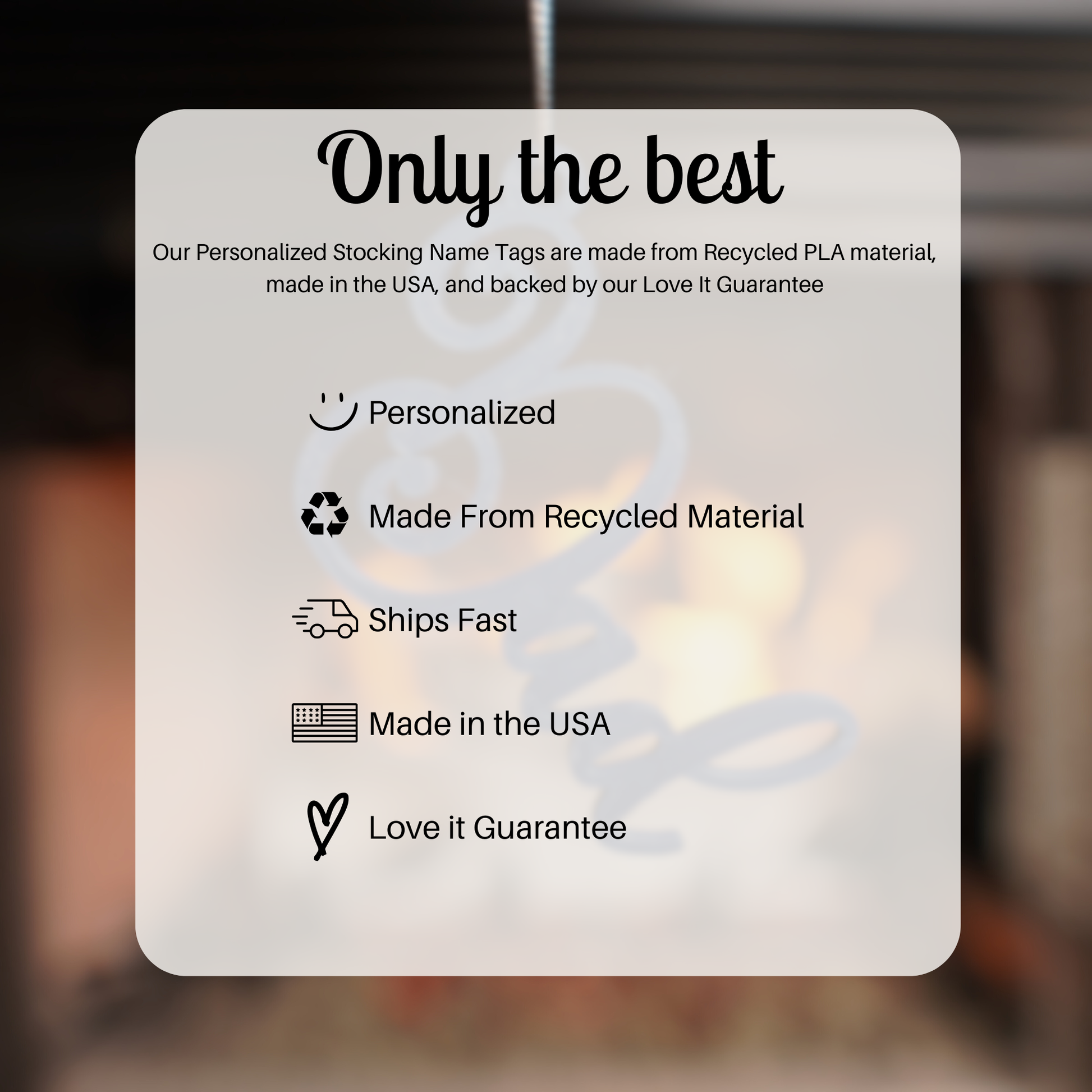 ✨ Crafted from durable 3D printed lightweight PLA material. This stocking tag is designed to last for years to come.